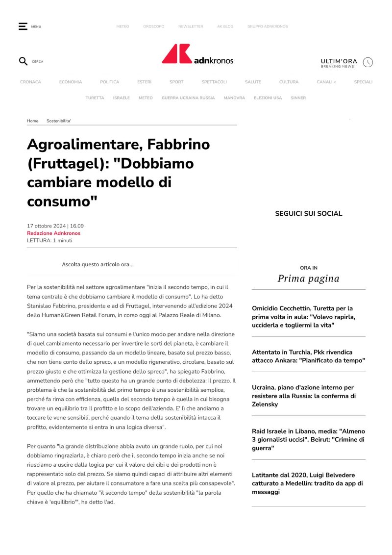Fruttagel su ADNKRONOS – 17 ottobre 2024