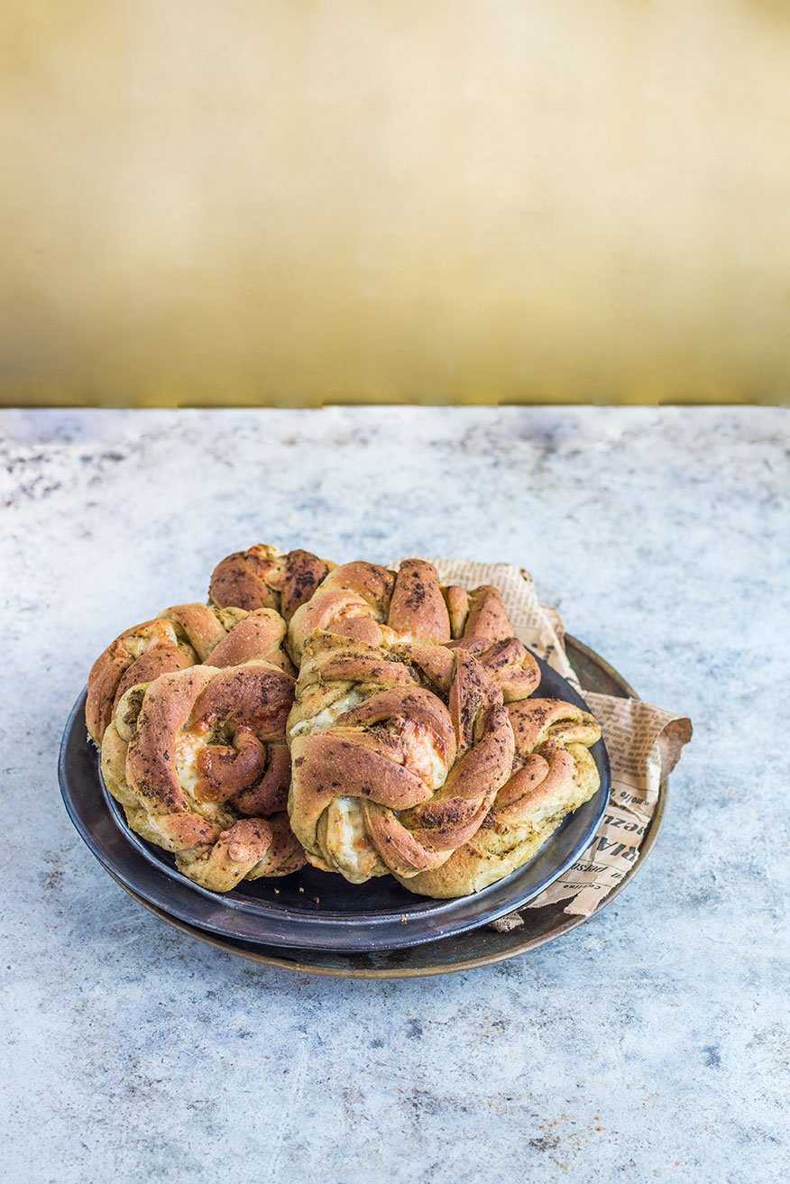 Brioches intrecciate con pesto e fontina